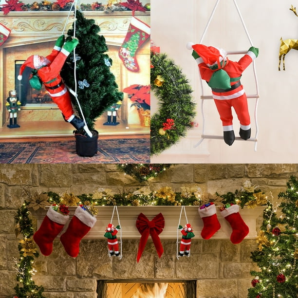 Santa Claus Climbing On Rope Ladder Christmas Tree Indoor Outdoor