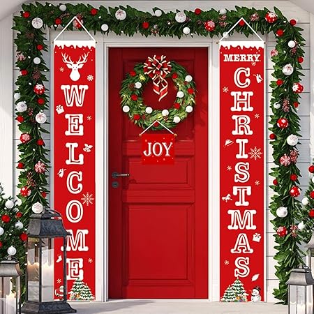 Amazon Com Lobkin Christmas Porch Sign Welcome And Merry