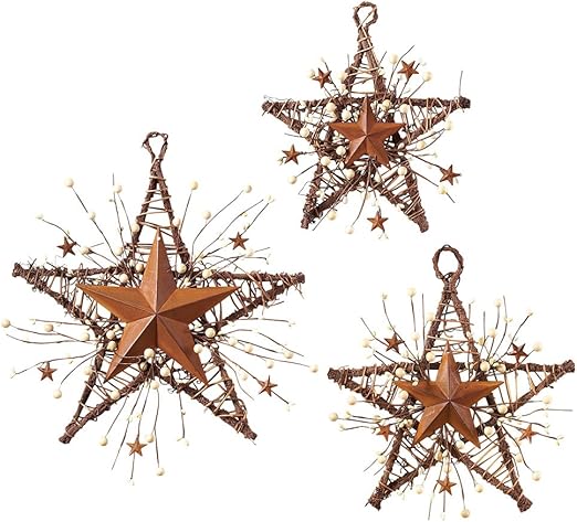 Set Of 3 Country Tan 6 10 14 Barn Stars Rustic Primitive Wall