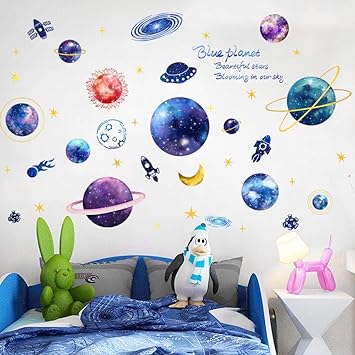 Amaonm Creative 3d Blue Cosmic Galaxy Wall Decals Removable Pvc