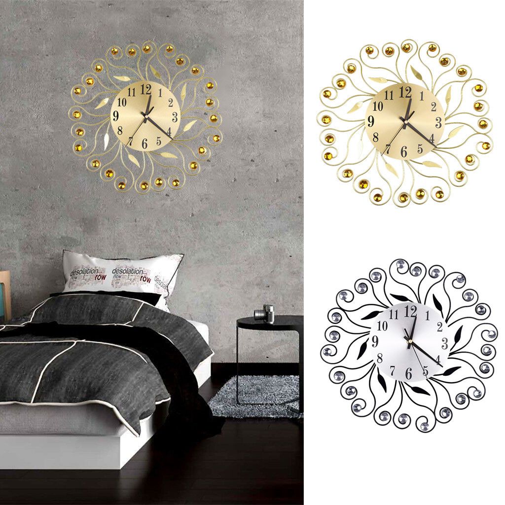 Large 21 3d Metal Silent Wall Clock Peacock 40pcs Diamonds